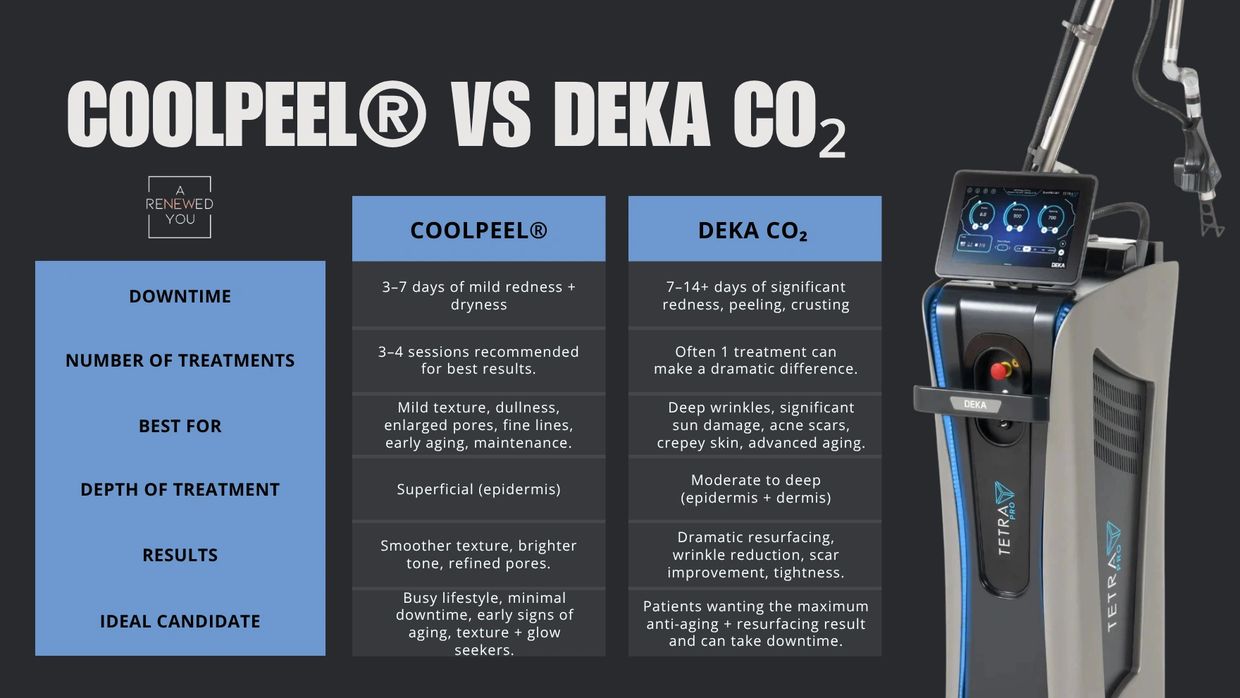 The Tetra Pro CO₂ laser is the most advanced skin-resurfacing technology available today. This next-generation fractional CO₂ device by Cartessa allows for both traditional deep resurfacing and the revolutionary CoolPeel® treatment— a no-downtime CO₂ option that renews skin texture, tone, and overall glow with minimal discomfort or recovery.